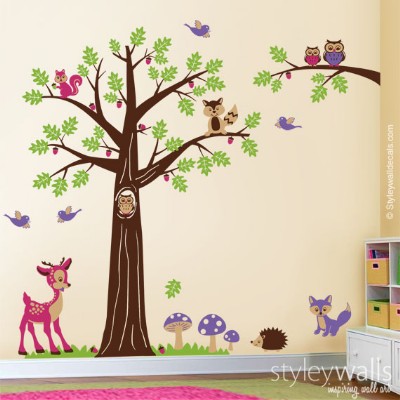 מדבקת קיר לחדר ילדים עץ וחיות יער