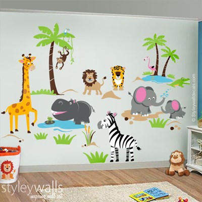 מדבקת קיר לחדר ילדים חיות ג'ונגל וספארי