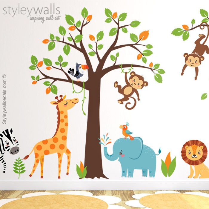 מדבקת קיר לחדר ילדים עץ וחיות ג'ונגל