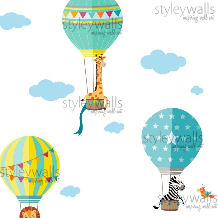 הסט כולל 5 כדורים פורחים עם חיות ו13 עננים.