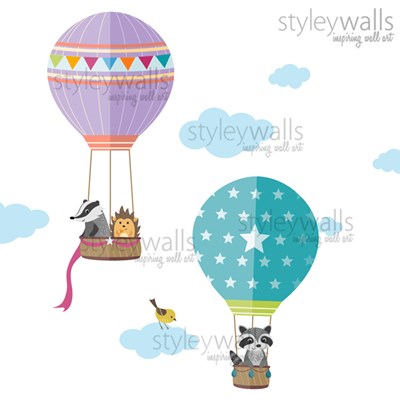 מדבקת קיר כדורים פורחים עם חיות יער