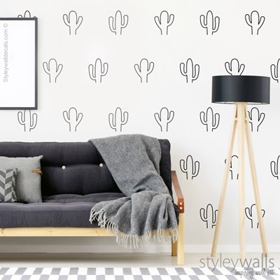 מדבקת טפט לחדר ילדים קקטוסים בקווים