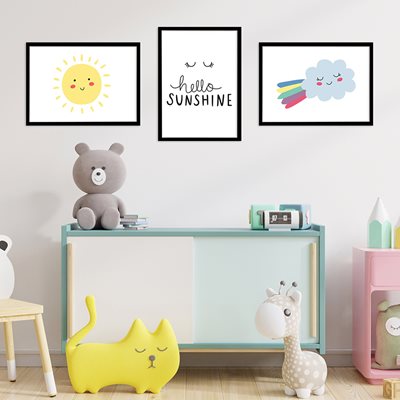 סט הדפסים לחדר ילדים- שמש ועננים Hello Sunshine