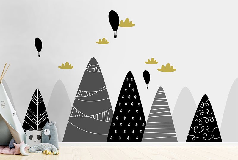 טפט לחדרי ילדים- הרים בצבע אפור-שחור