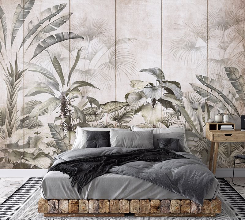 טפט לחדר שינה עצים ועלים טרופיים