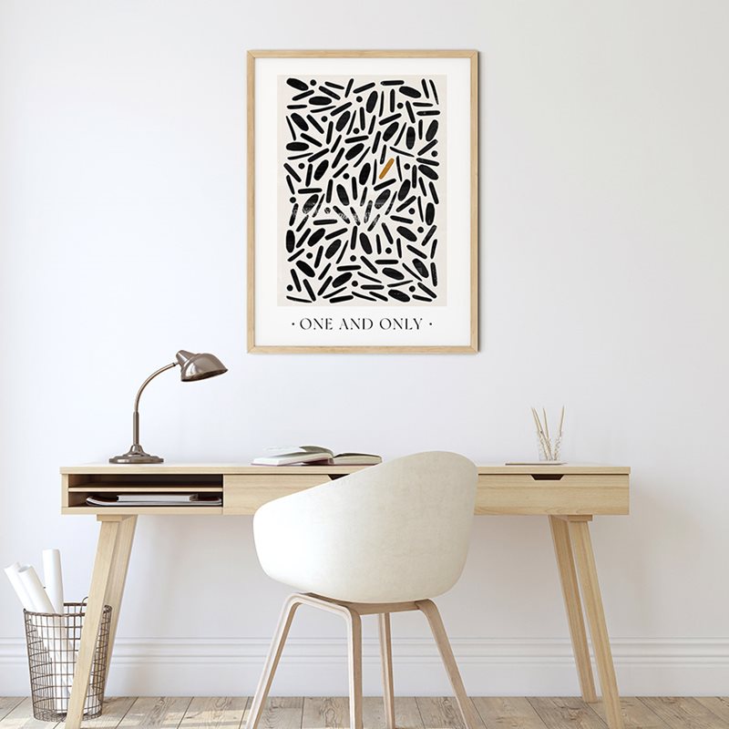 הדפס אמנותי מינימליסטי עם קומפוזיציה חופשית של צורות אליפטיות מופשטות. העיצוב הנקי והמודרני יוצר מראה ייחודי ומעורר עניין, מושלם לסלון, חדר עבודה או משרד המעוצבים בסגנון עכשווי.