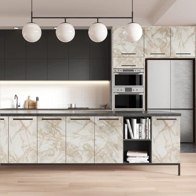 טפט פרימיום לארונות מטבח - שיש בז'/ שמנת