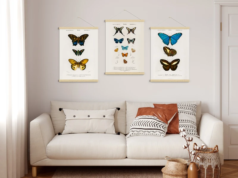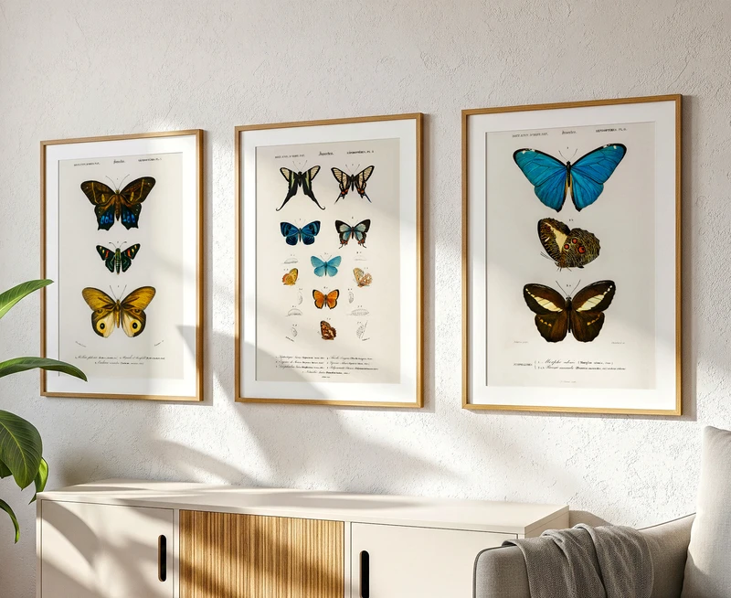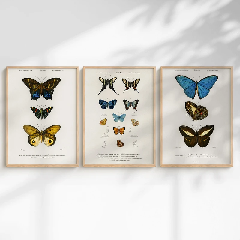 תמונות וינטג' לבית – פרפרים מאוירים בסגנון בוטני