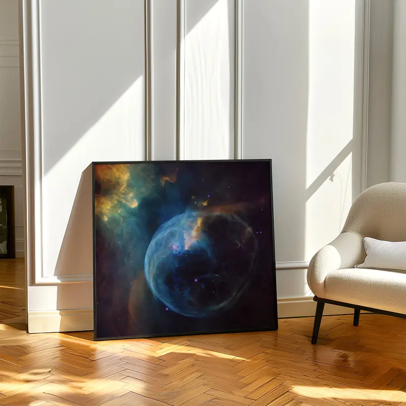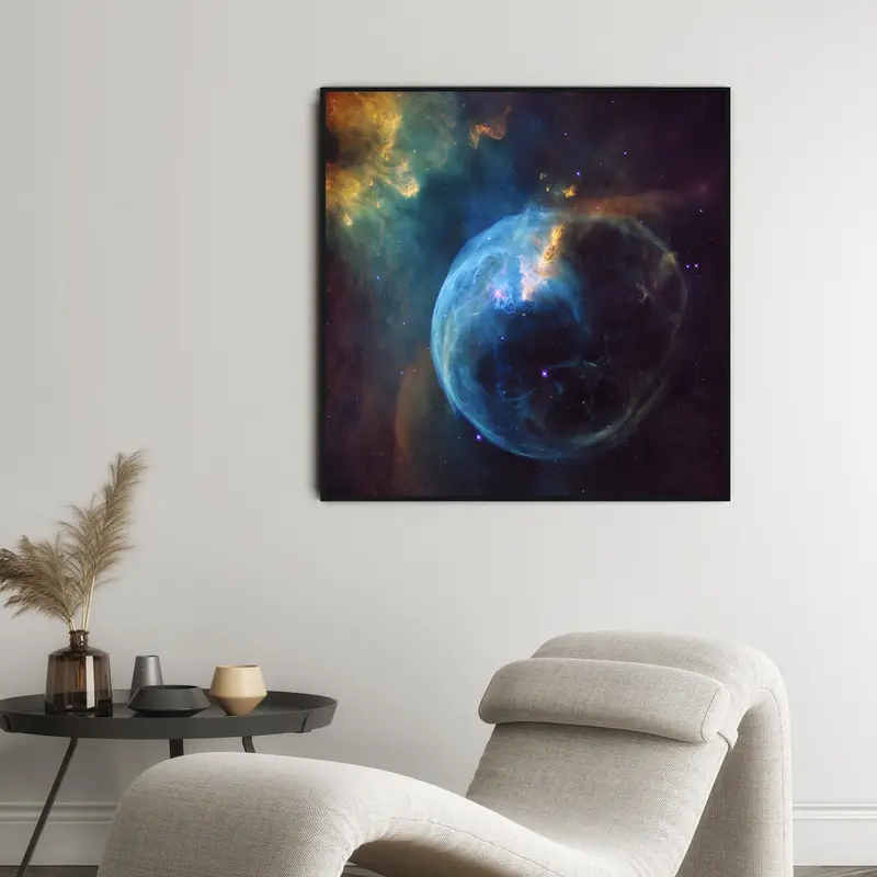 הדפס אמנותי המבוסס על צילום אמיתי של ערפילית הבועה (Bubble Nebula) שנקלטה בעדשת הטלסקופ האבל של נאס״א (Hubble Space Telescope).