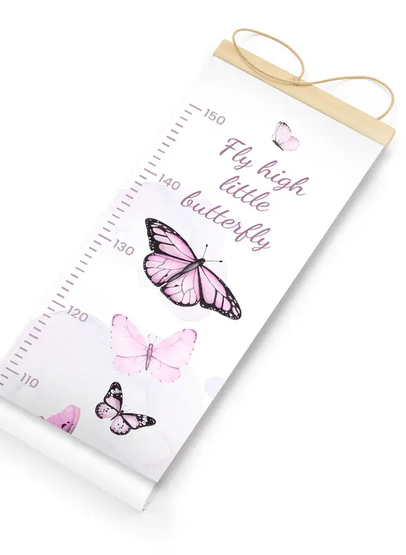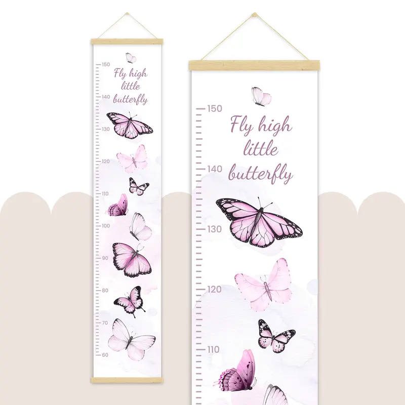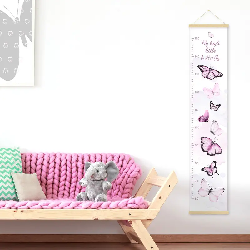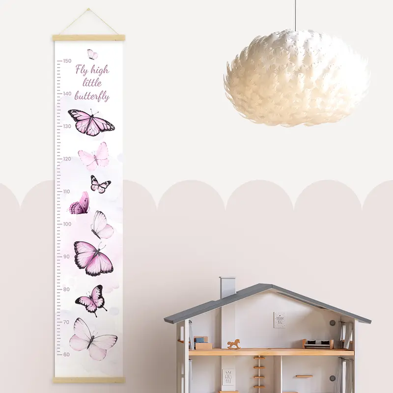 מד גובה מעוצב לילדים, מודפס על קנבס כותנה איכותי בגימור מט ומגיע עם מתלה מגנטי מעץ טבעי לתלייה נוחה ואלגנטית.