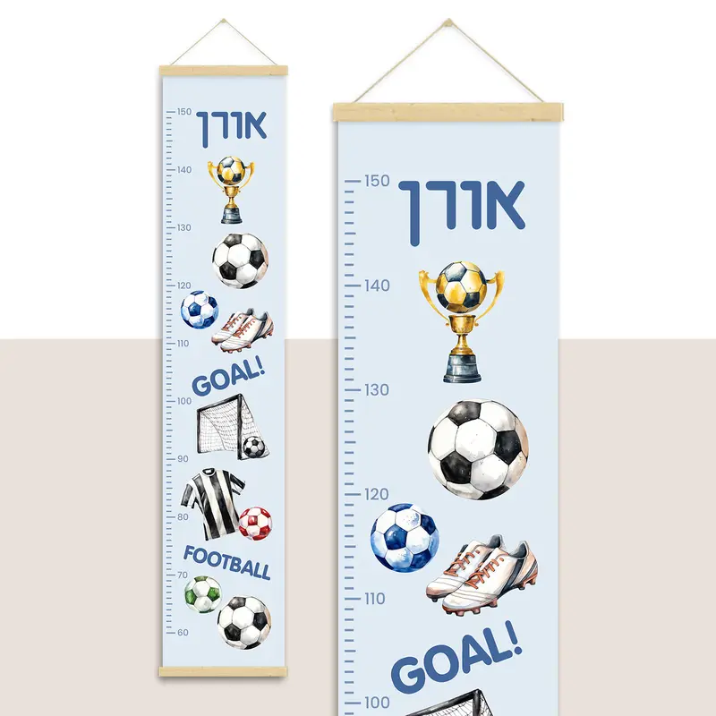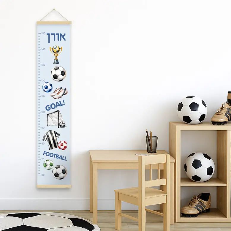 מד גובה מעוצב לילדים, מודפס על קנבס כותנה איכותי בגימור מט ומגיע עם מתלה מגנטי מעץ טבעי לתלייה נוחה ואלגנטית.