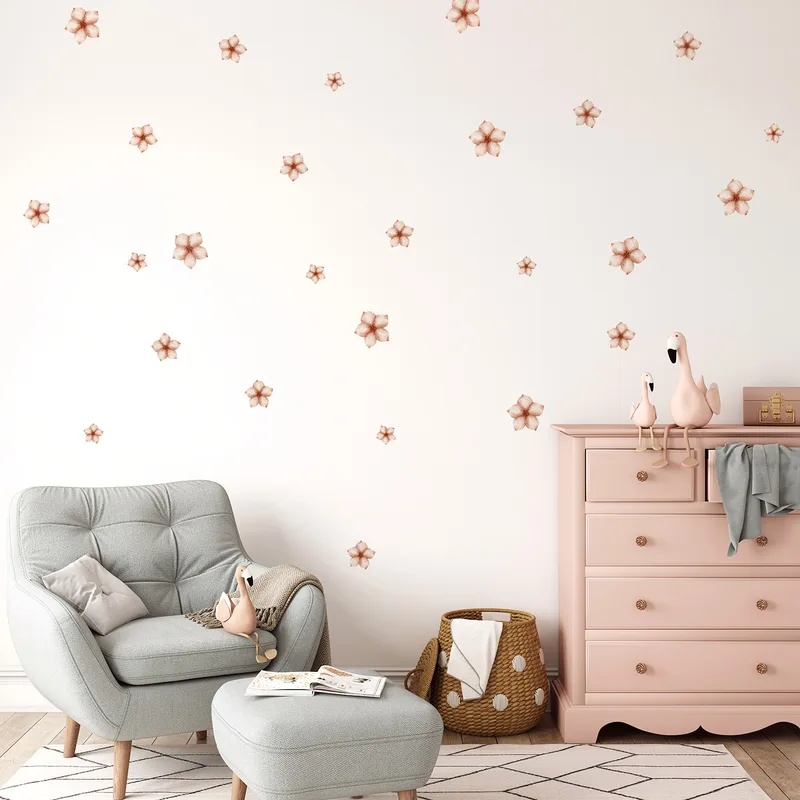 מדבקות קיר פרחי בוהו שיק בעיצוב פסטלי רך לחדרי בנות