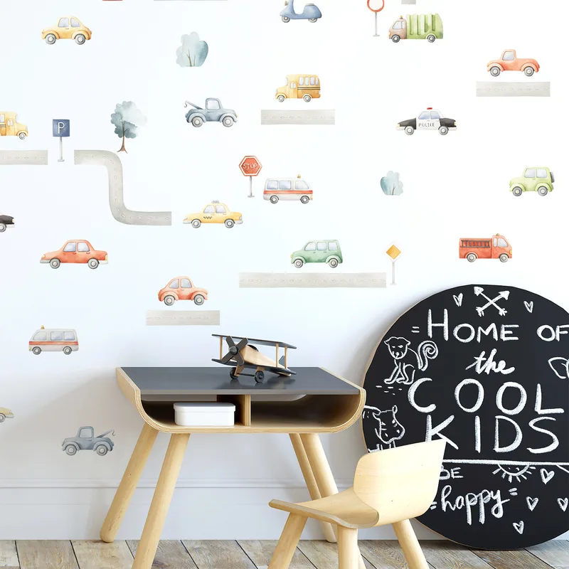 מדבקות קיר מכוניות וכבישים – עיר קטנה בחדר הילדים