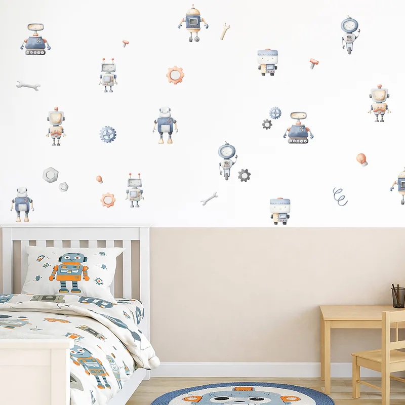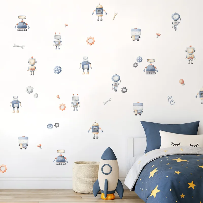 מדבקות קיר רובוטים לעיצוב חדרי ילדים