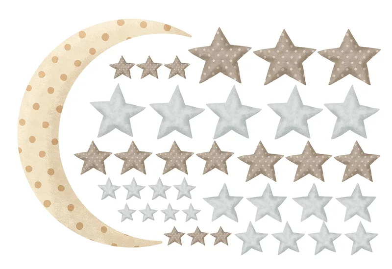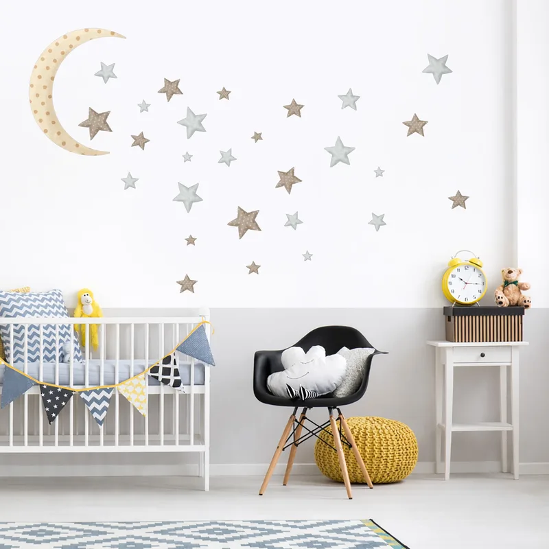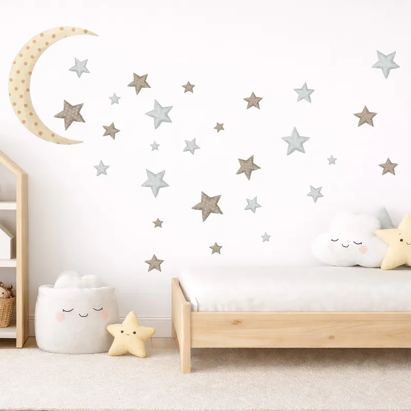 מדבקות קיר ירח וכוכבים סקנדינבי לעיצוב חדר ילדים