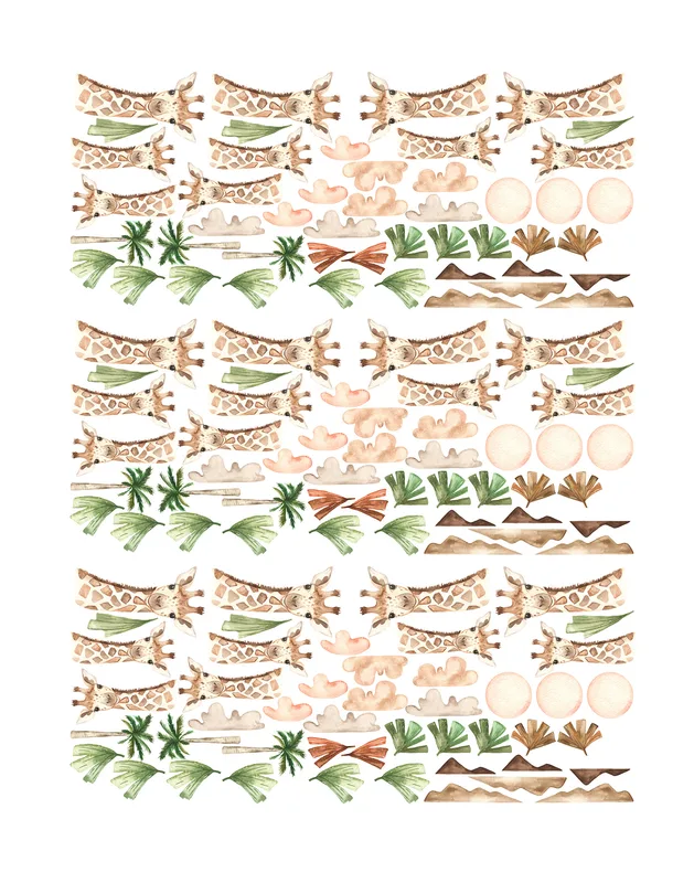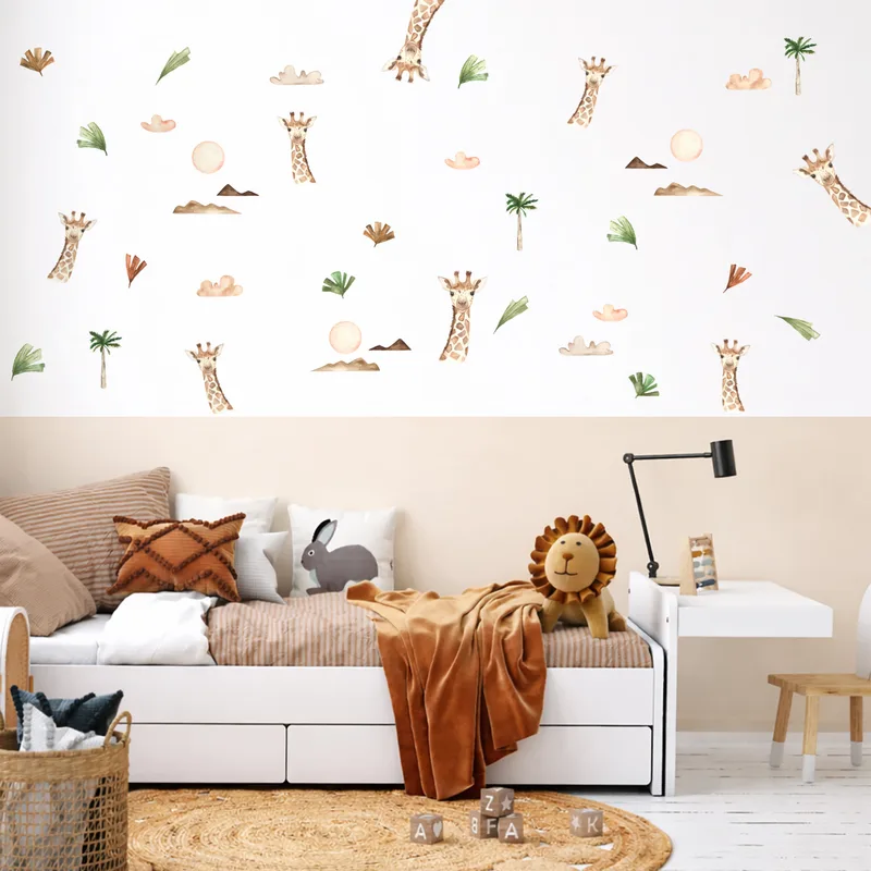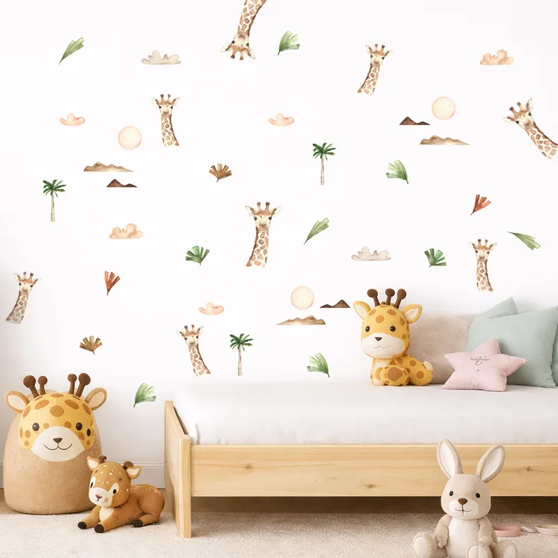מדבקות קיר ג'ירפות – בוהו ספארי עדין לחדר ילדים