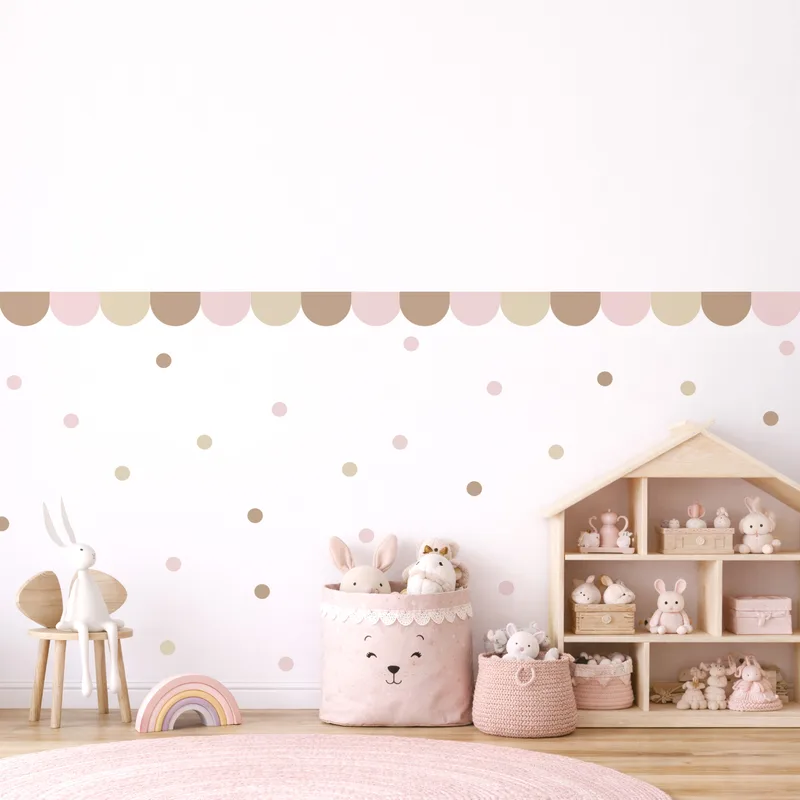 מדבקת בורדר צבעוני עדין עם עיגולים – לעיצוב חדר ילדים