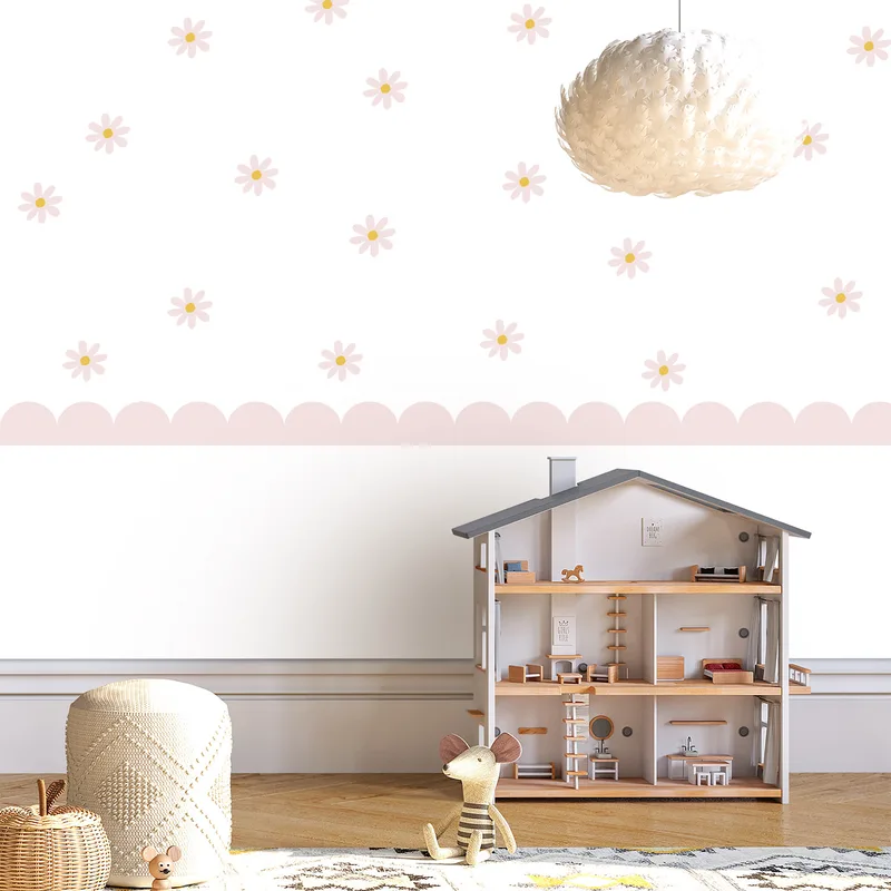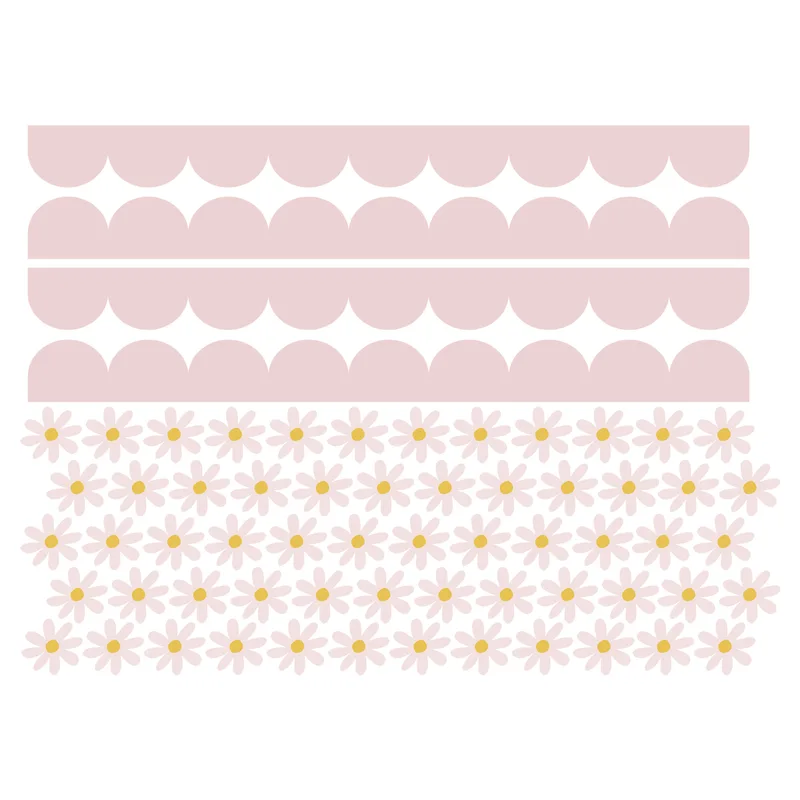 סט בורדר ורוד ומדבקות פרחים – לעיצוב קיר לחדר ילדות