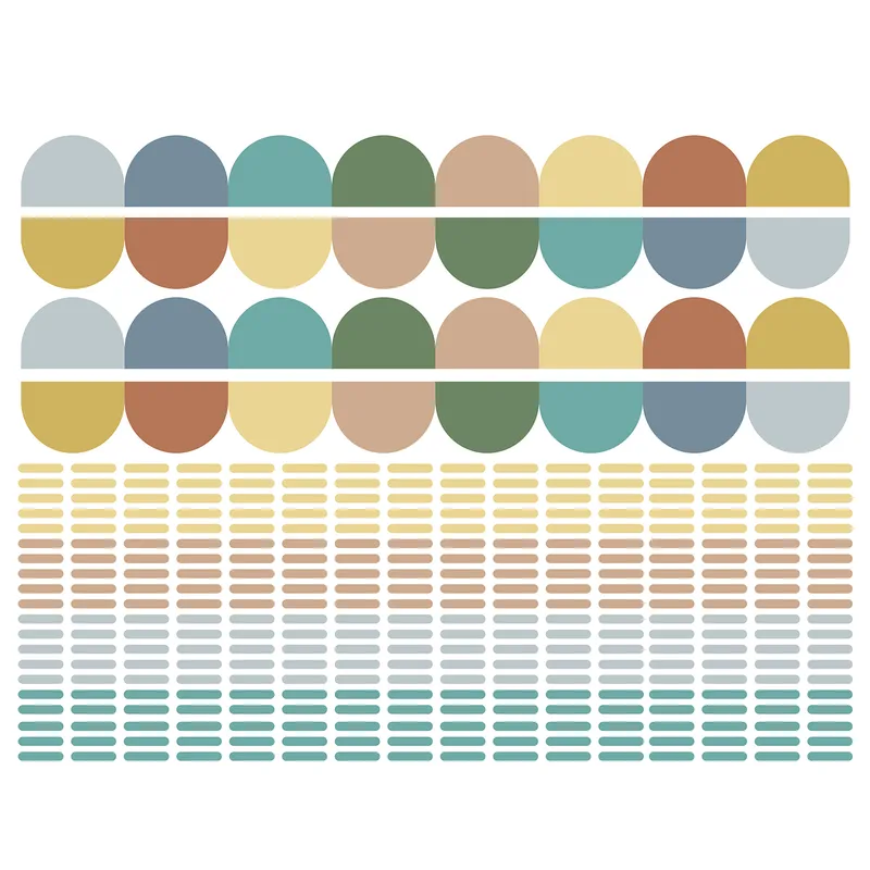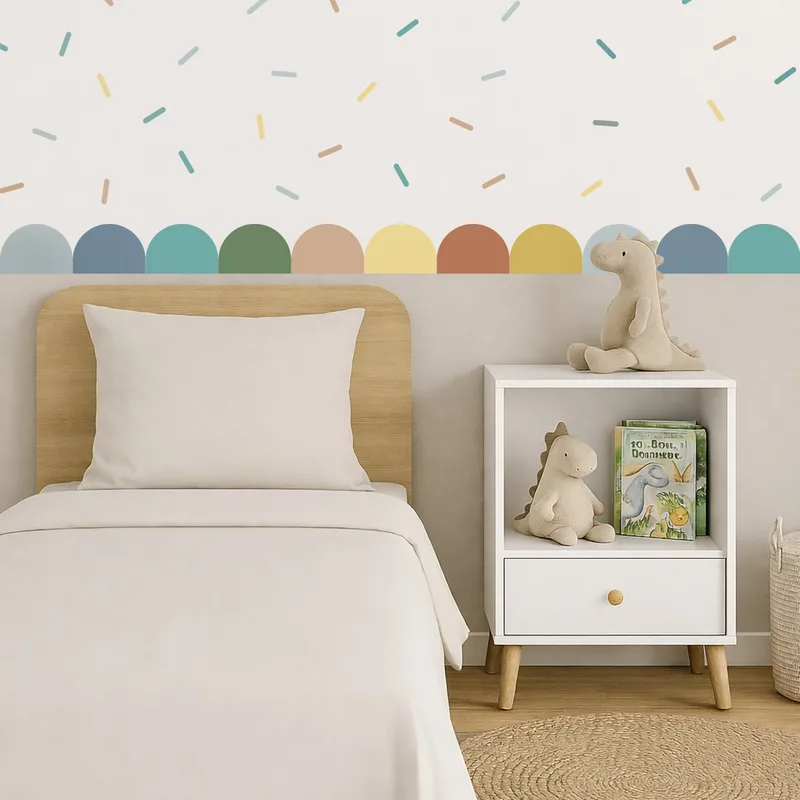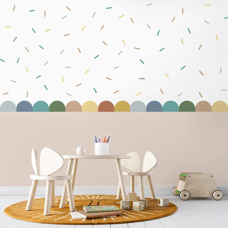 סט משולב כולל בורדר מסולסל Scalloped צבעוני ומדבקות קונפטי צבעוניות להתזה על הקיר.
