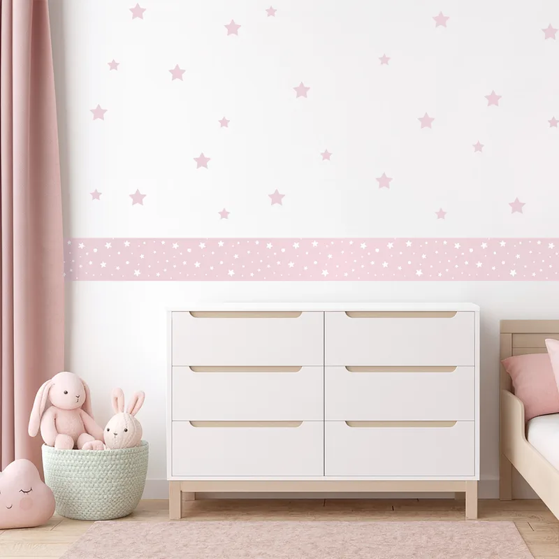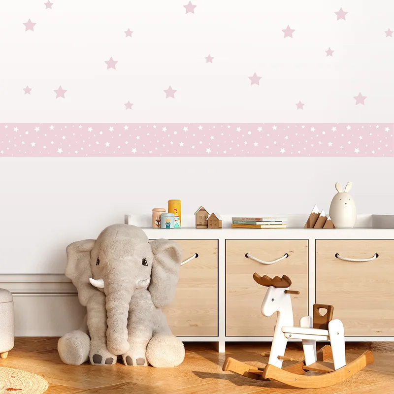 סט מדבקות קיר רב פעמיות כוכבים ובורדר תואם עם כוכבים.