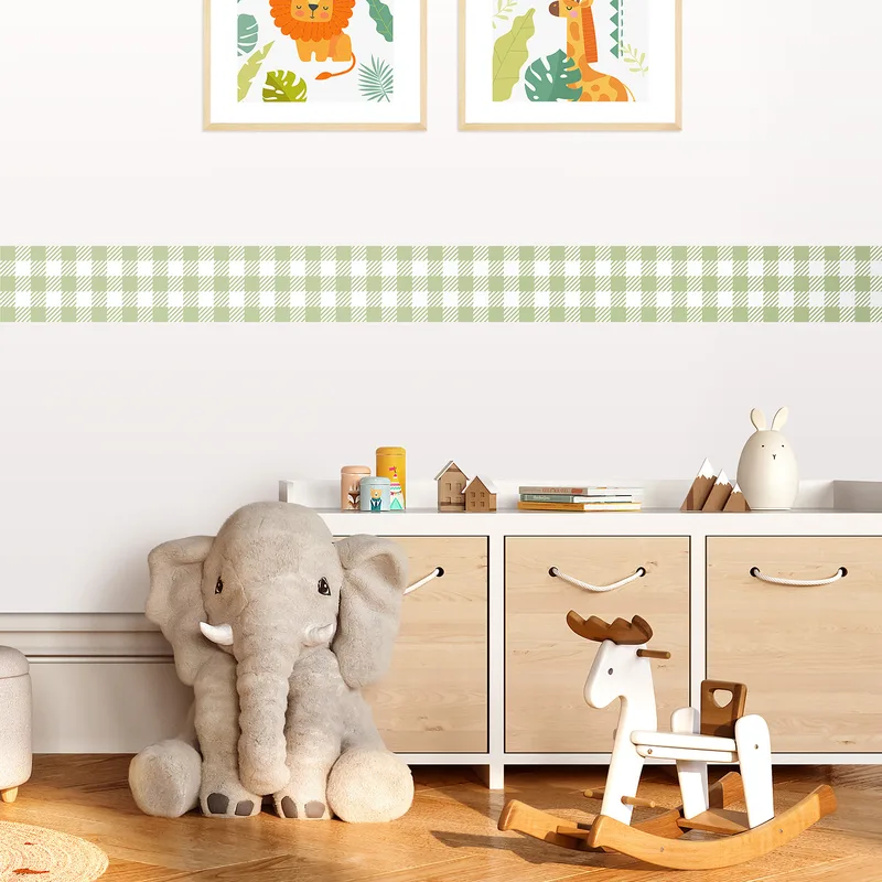 מדבקת בורדר משבצות סקנדינבי ירוק לחדרי ילדים