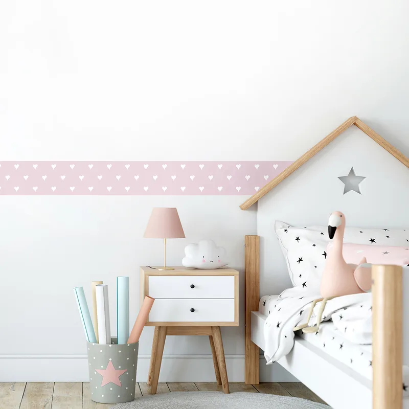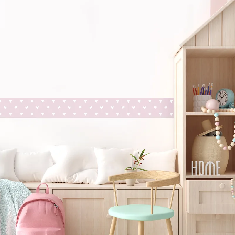 מדבקות בורדר עם לבבות בורוד - עיצוב קיר לחדר ילדות
