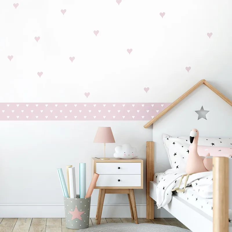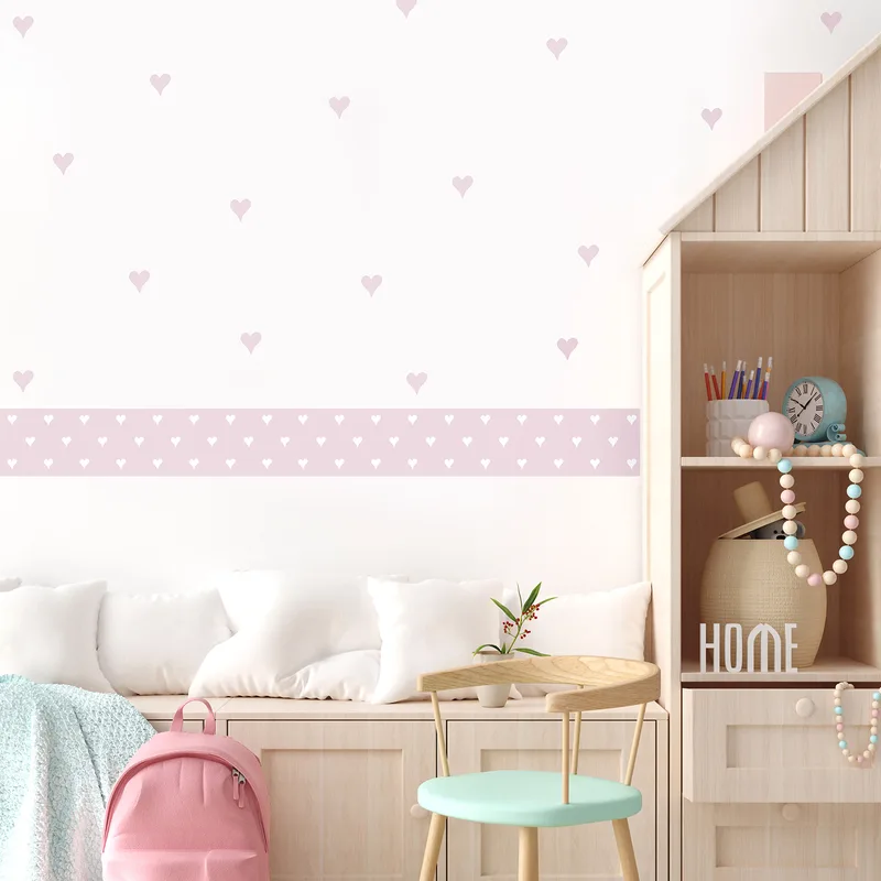 מדבקות קיר לבבות ובורדר עם - עיצוב קיר לחדר ילדות
