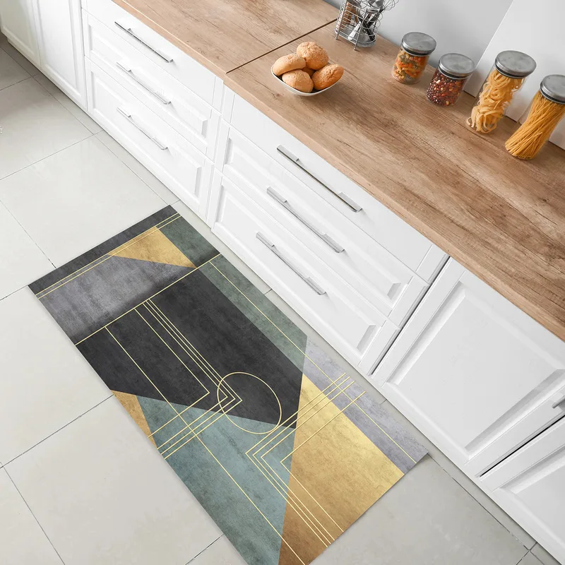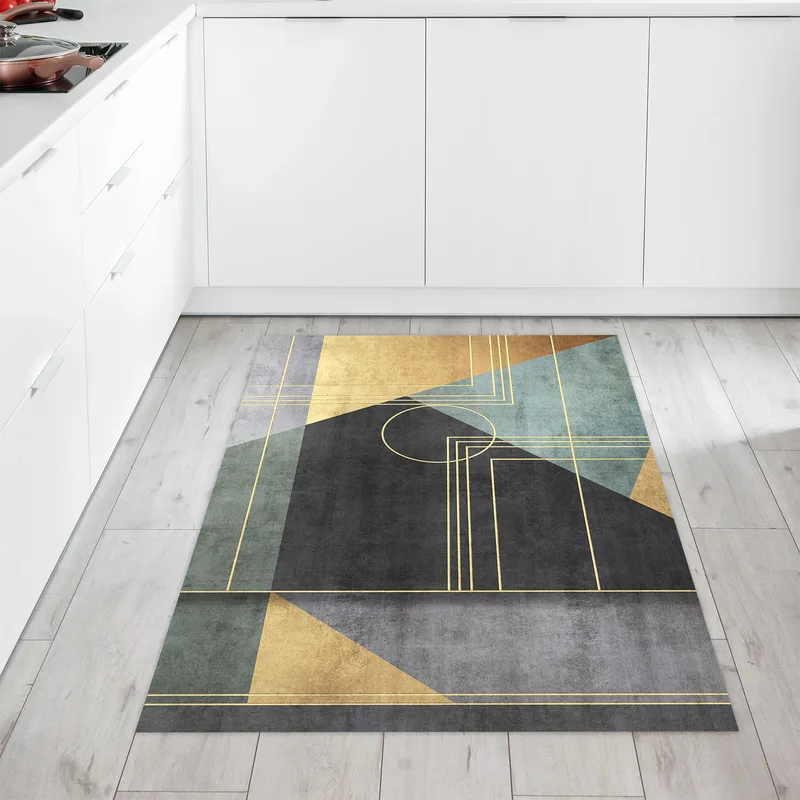 שטיח פי וי סי למטבח בעיצוב מודרני שחור זהב וירוק