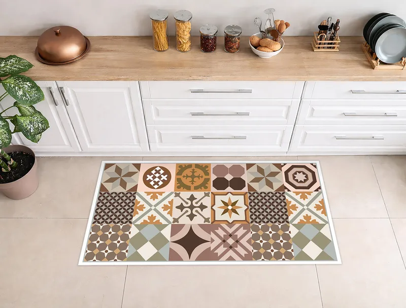 שטיח פי וי סי למטבח בעיצוב אריחים מצוירים בסגנון מרוקאי קלאסי
