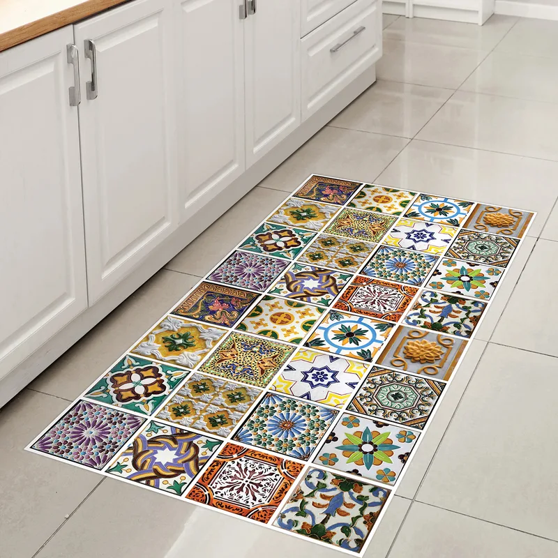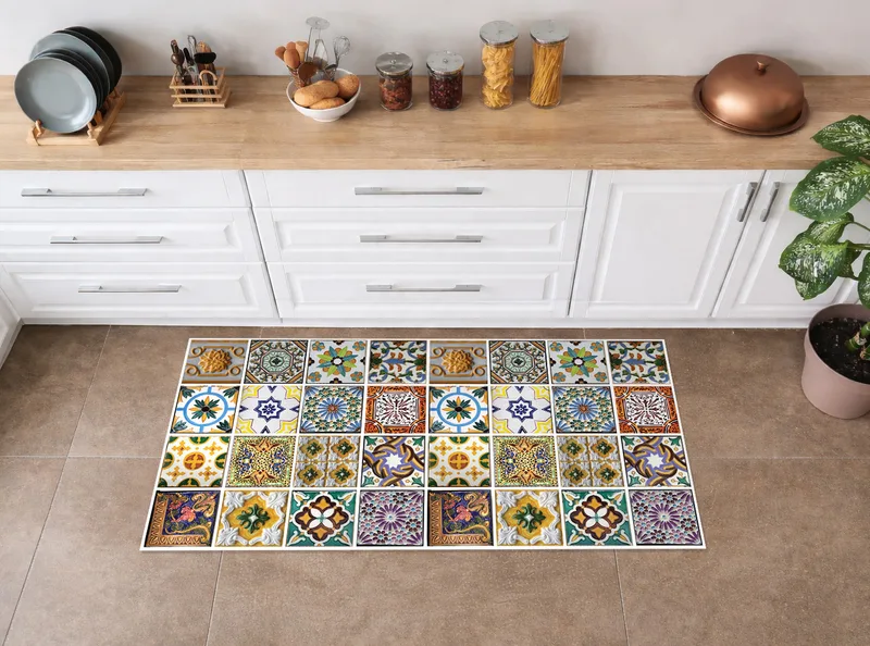 שטיח פי וי סי למטבח בעיצוב אריחים מרוקאיים צבעוניים וינטג’