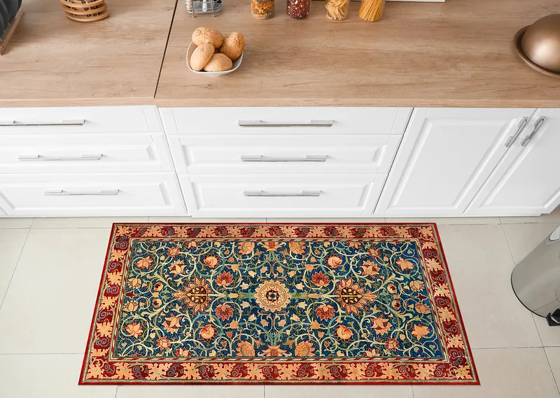 שטיח פי וי סי למטבח בעיצוב שטיח פרסי אוריינטלי בסגנון William Morris