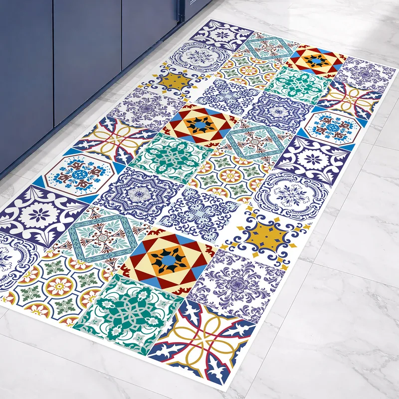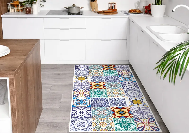 שטיח פי וי סי למטבח בסגנון אריחים ספרדיים מרוקאיים