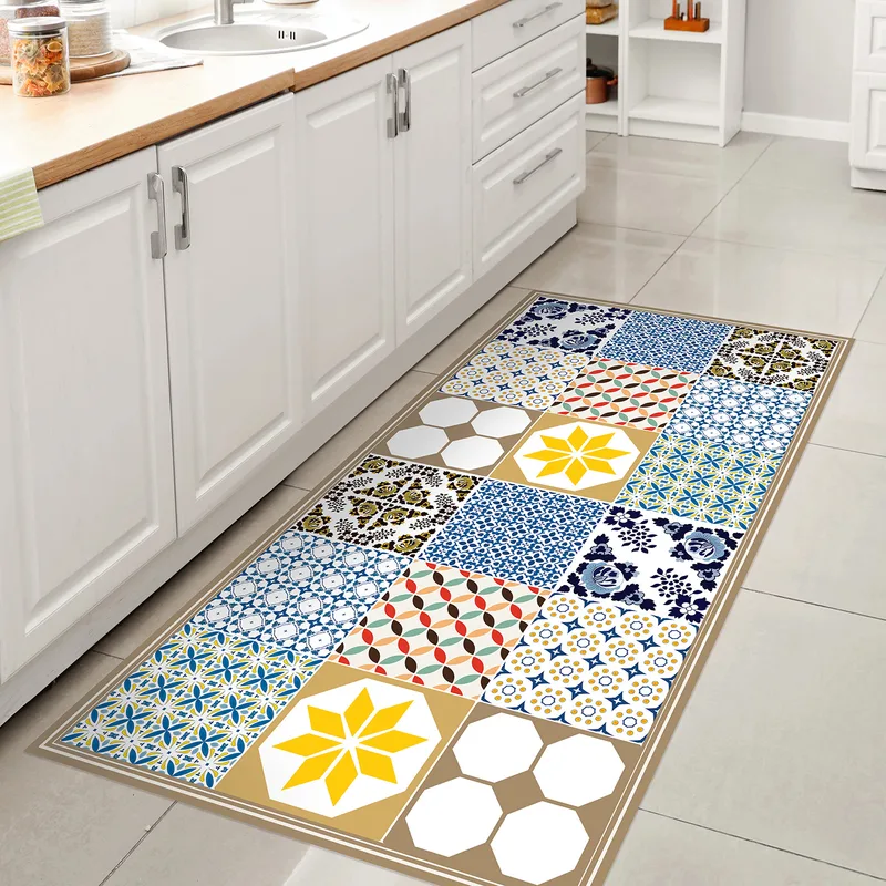 שטיח PVC למטבח בעיצוב פסיפס אריחים גאומטריים