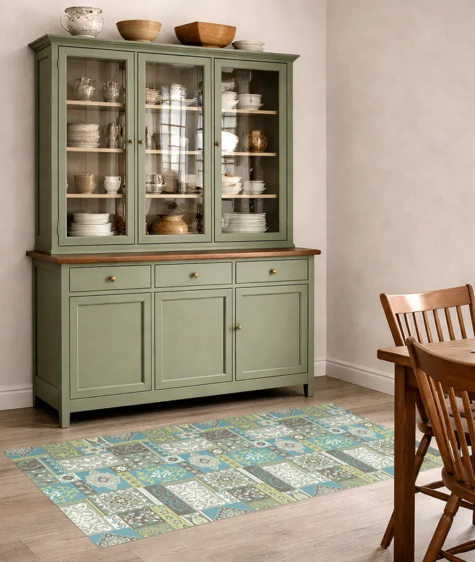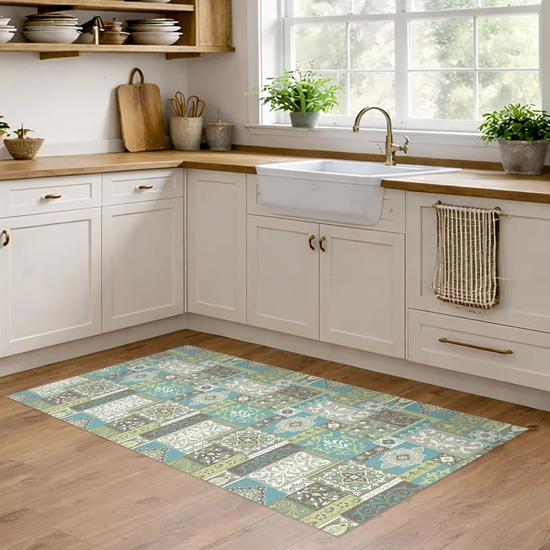 שטיח פי וי סי למטבח בעיצוב אריחים טורקיז ירוק בסגנון כפרי