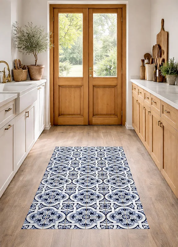 שטיח פי וי סי למטבח בעיצוב אריחי קרמיקה מרוקאי