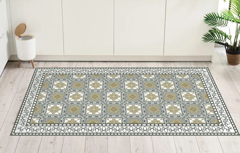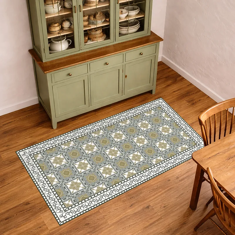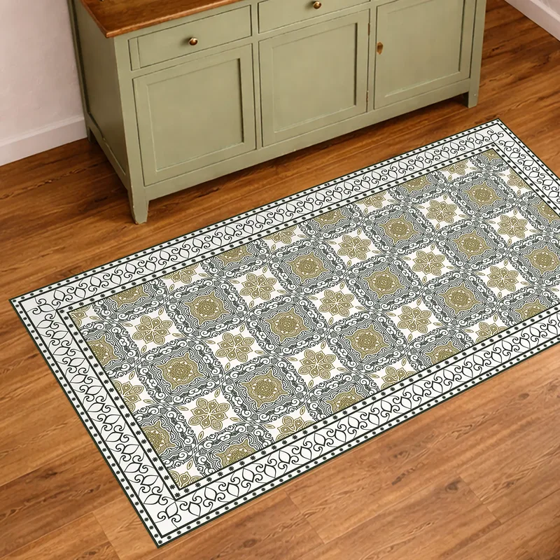 שטיח PVC למטבח דוגמת קרמיקה וינטג’ ירוק