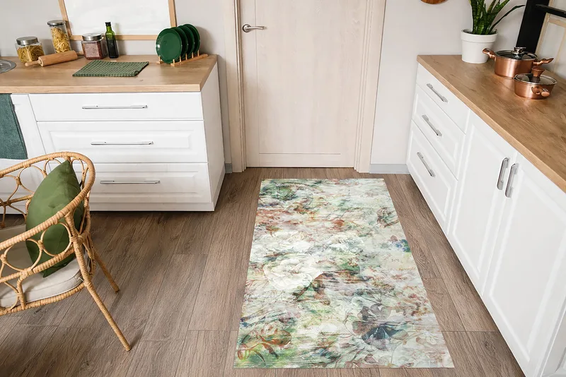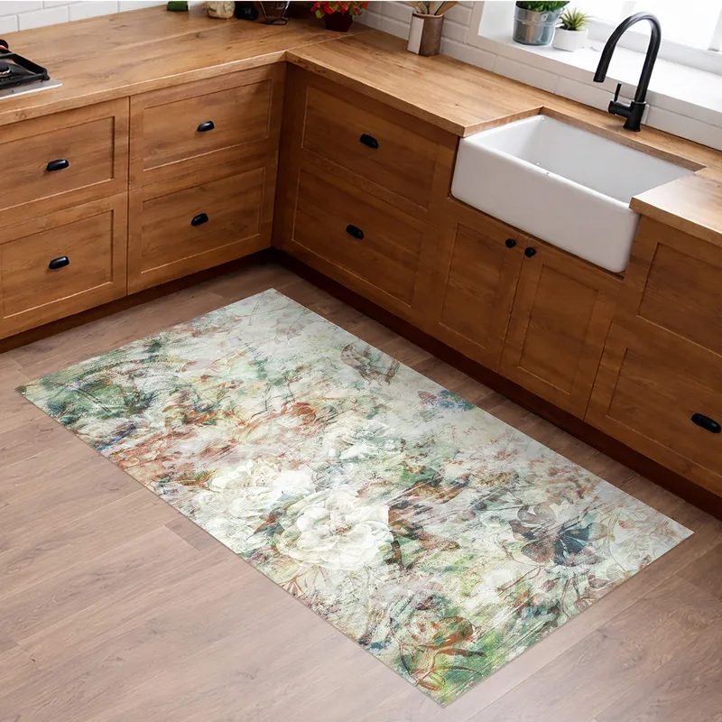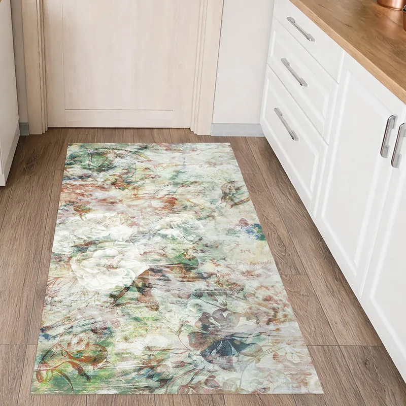 שטיח פי וי סי למטבח פרחים עדינים בגווני פסטל