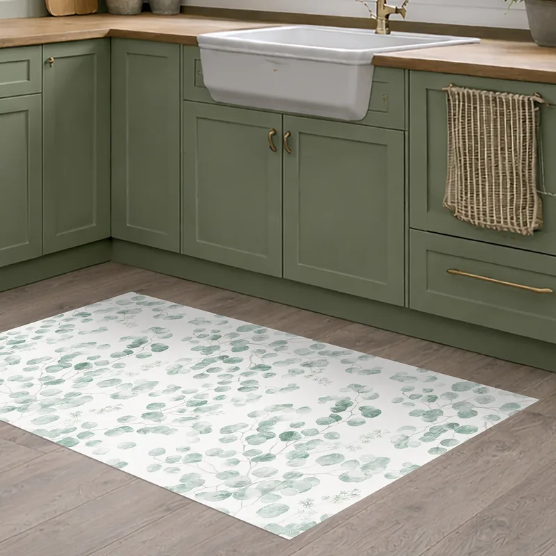 שטיח PVC למטבח – עלי אקליפטוס בגוונים ירוקים