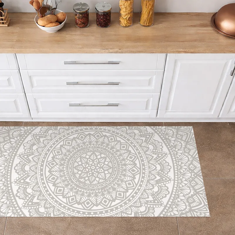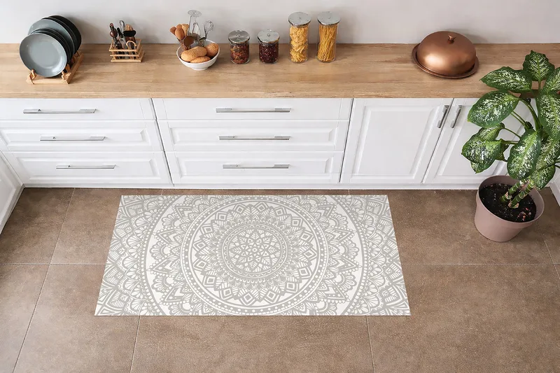 שטיח פי וי סי למטבח – מנדלה קלאסית בגווני אפור