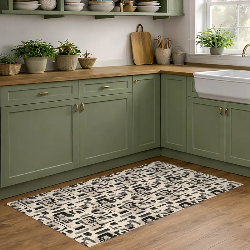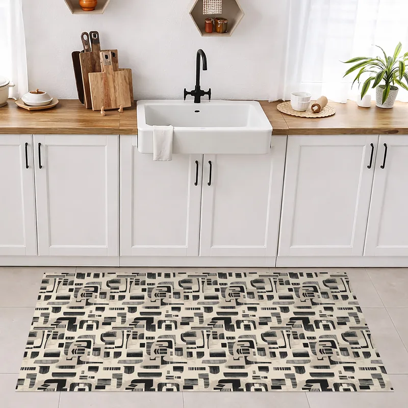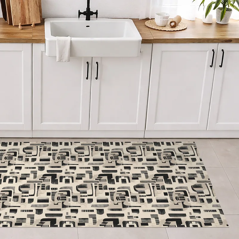 שטיח PVC בעיצוב גאומטרי שחור בז' מודרני