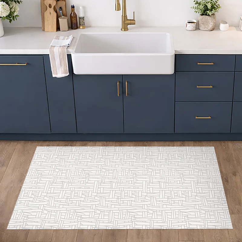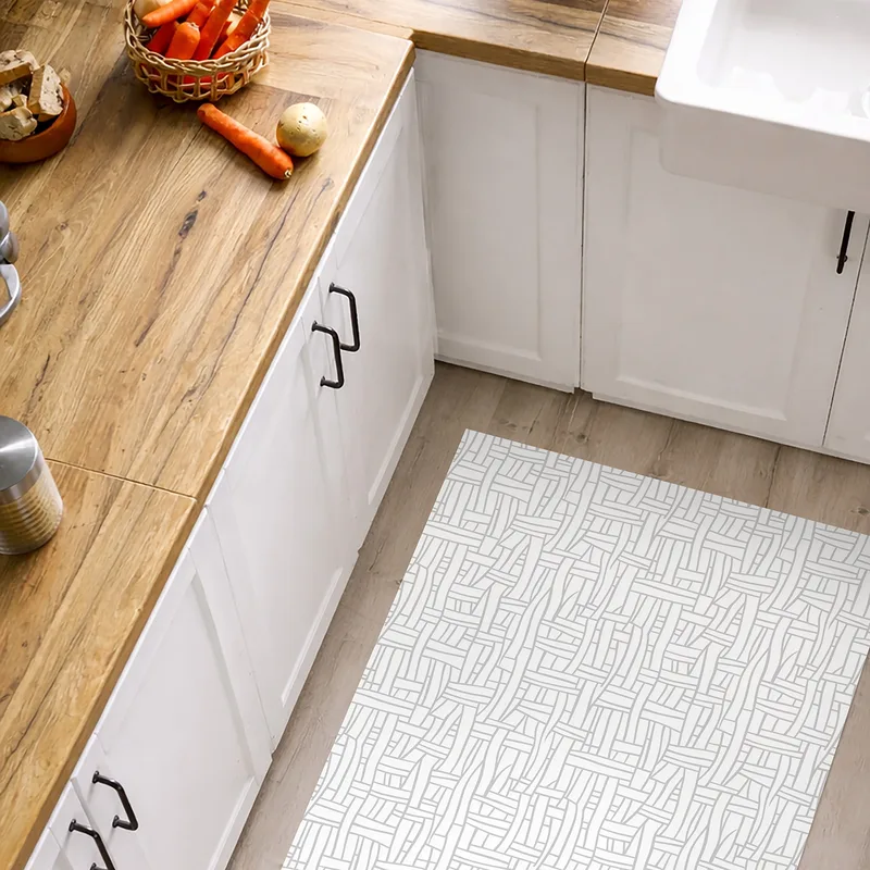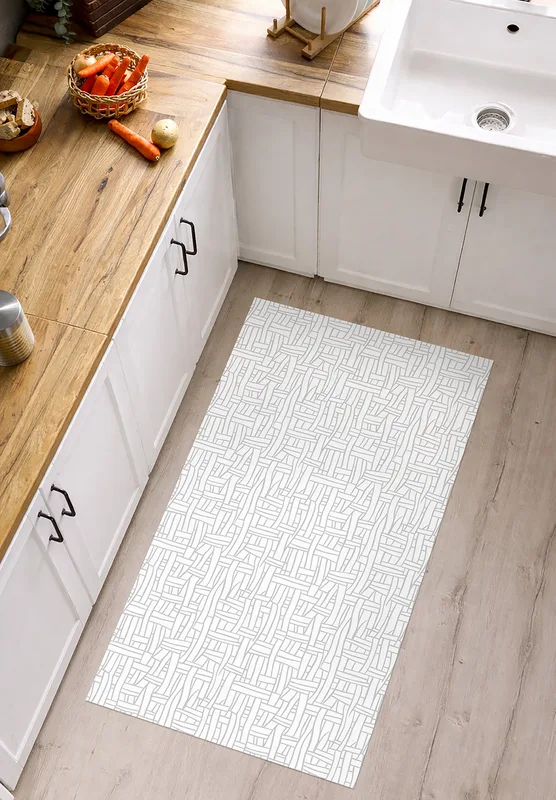 שטיח פי וי סי למטבח דוגמה סקנדינבית לבן אפור