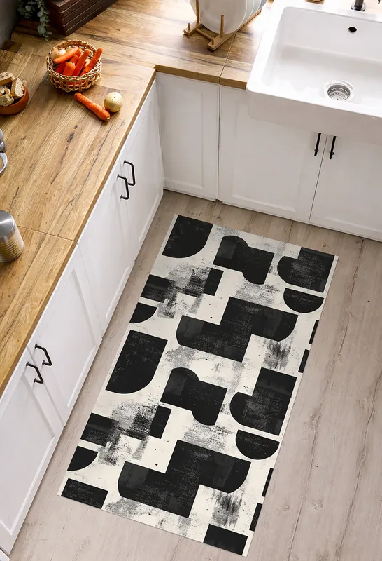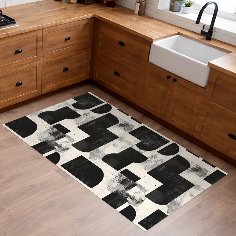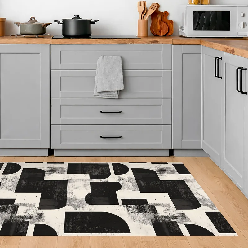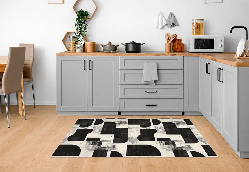 שטיח פי וי סי בעיצוב מודרני שחור לבן