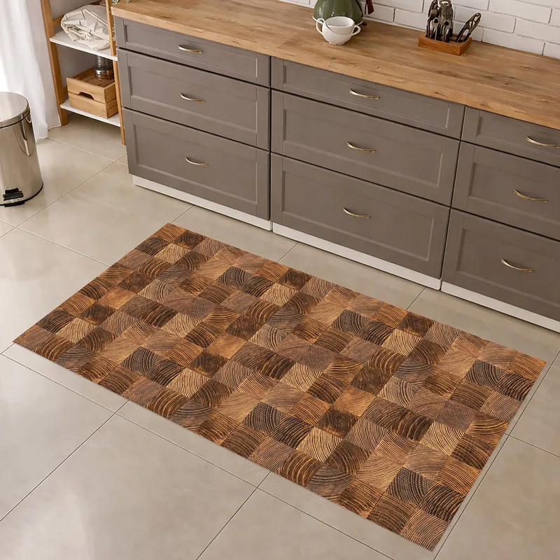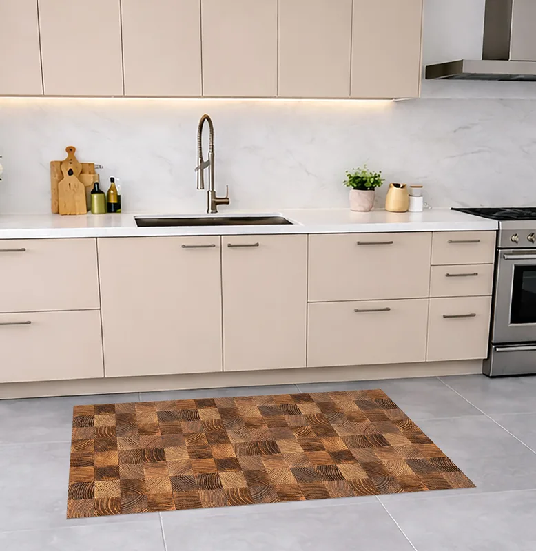 שטיח פי וי סי למטבח מראה קוביות עץ טבעי