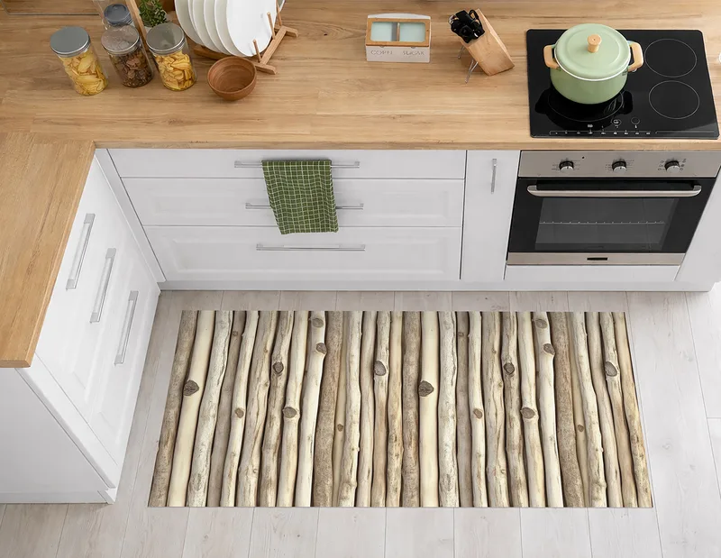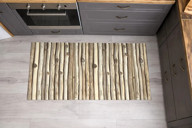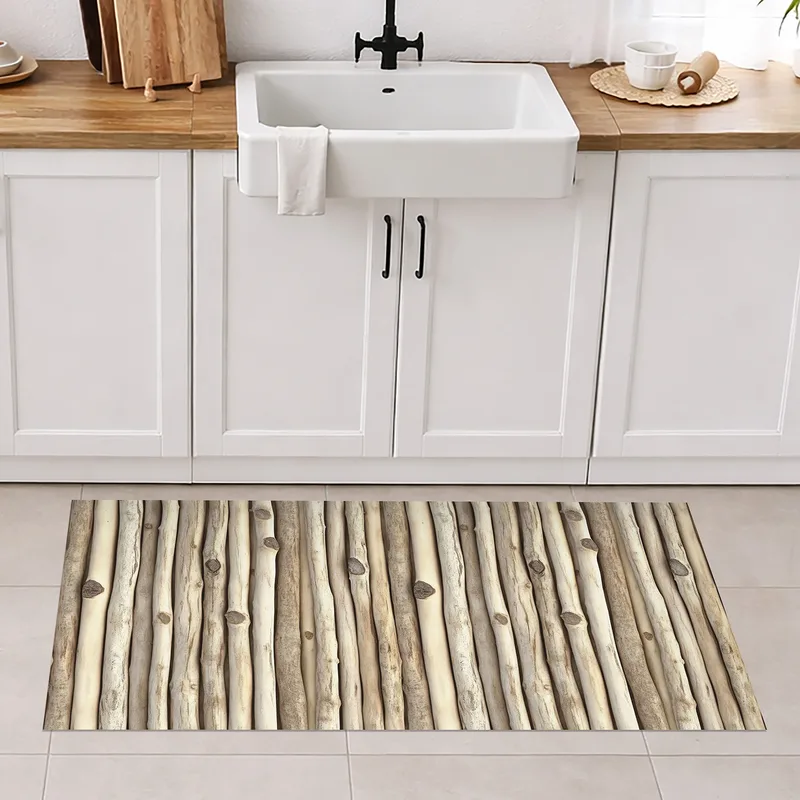 שטיח פי וי סי מראה עץ טבעי חמים בעיצוב כפרי