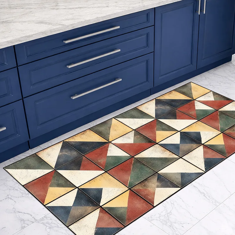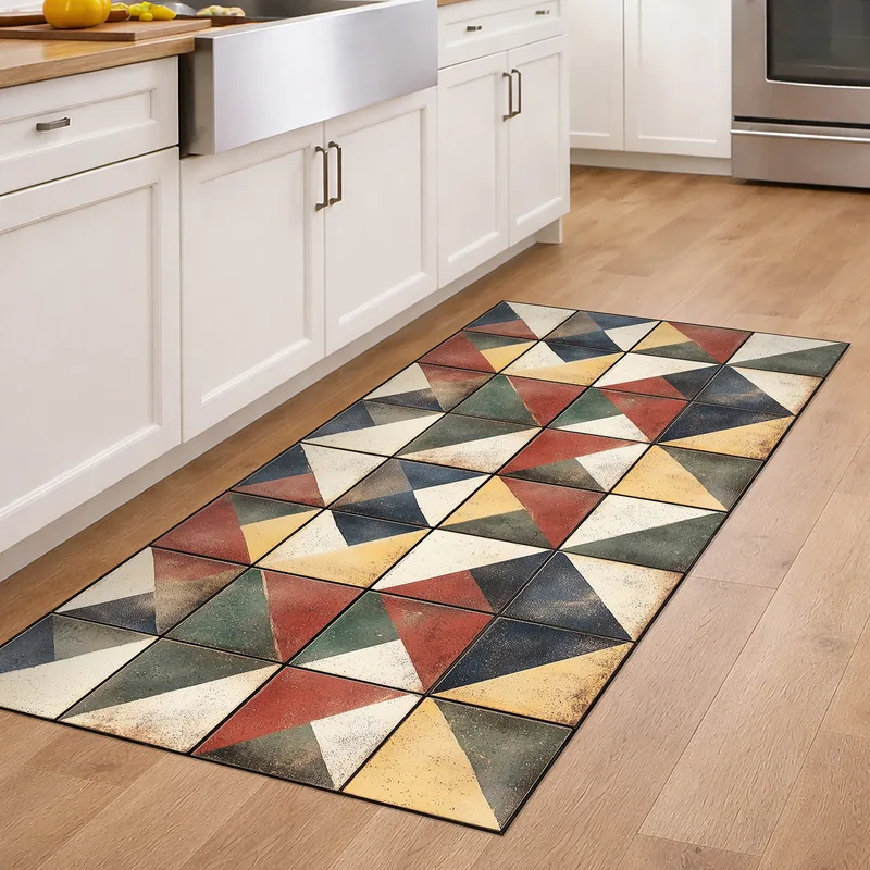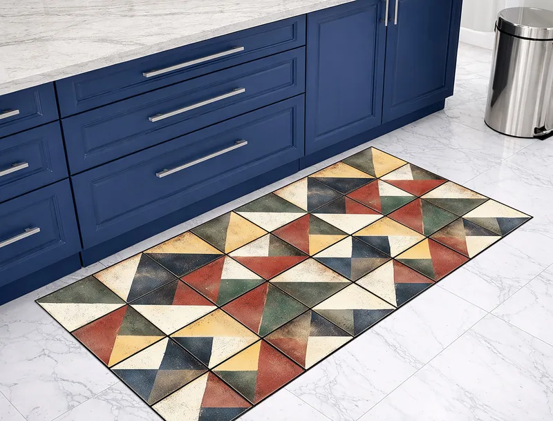 שטיח PVC בעיצוב אריחים גאומטריים צבעוניים