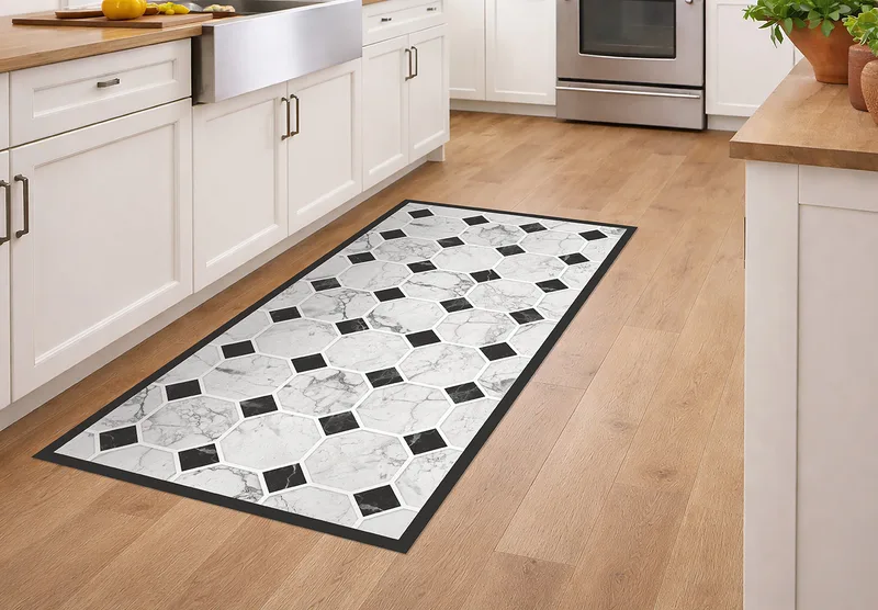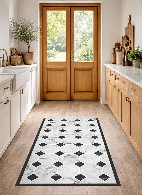 שטיח PVC מעוצב דוגמת שיש גאומטרי שחור לבן