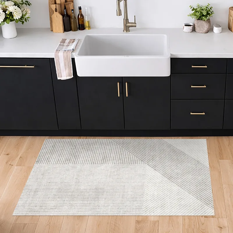 שטיח פי וי סי בעיצוב קווים גאומטריים בהירים