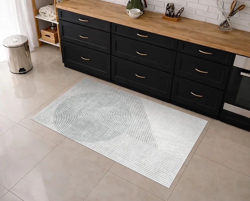 שטיח PVC מעוצב דוגמת קווים ומעגלים מינימליסטית