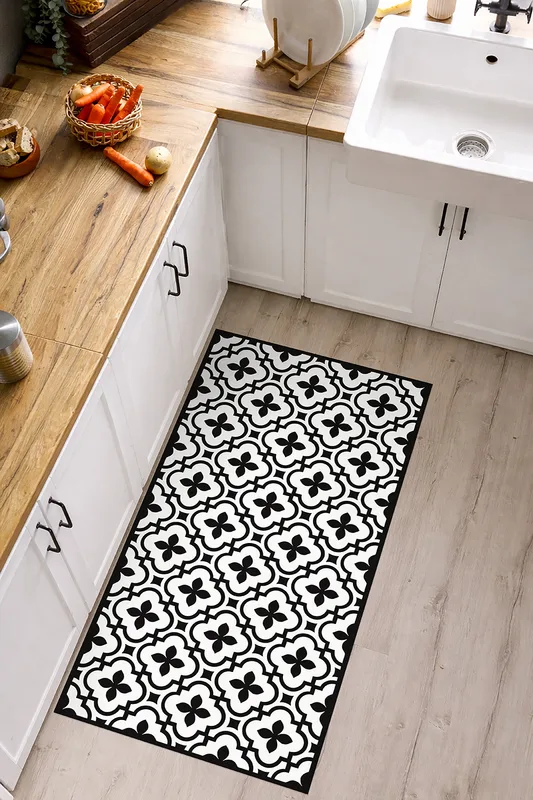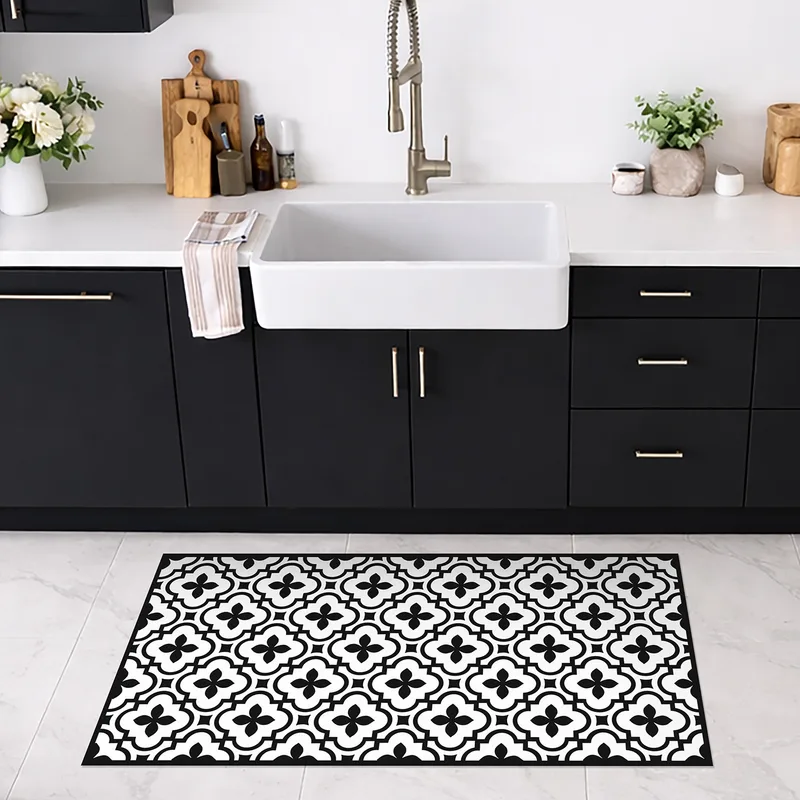 טיח פי וי סי למטבח מראה אריחים פרחוניים שחור לבן